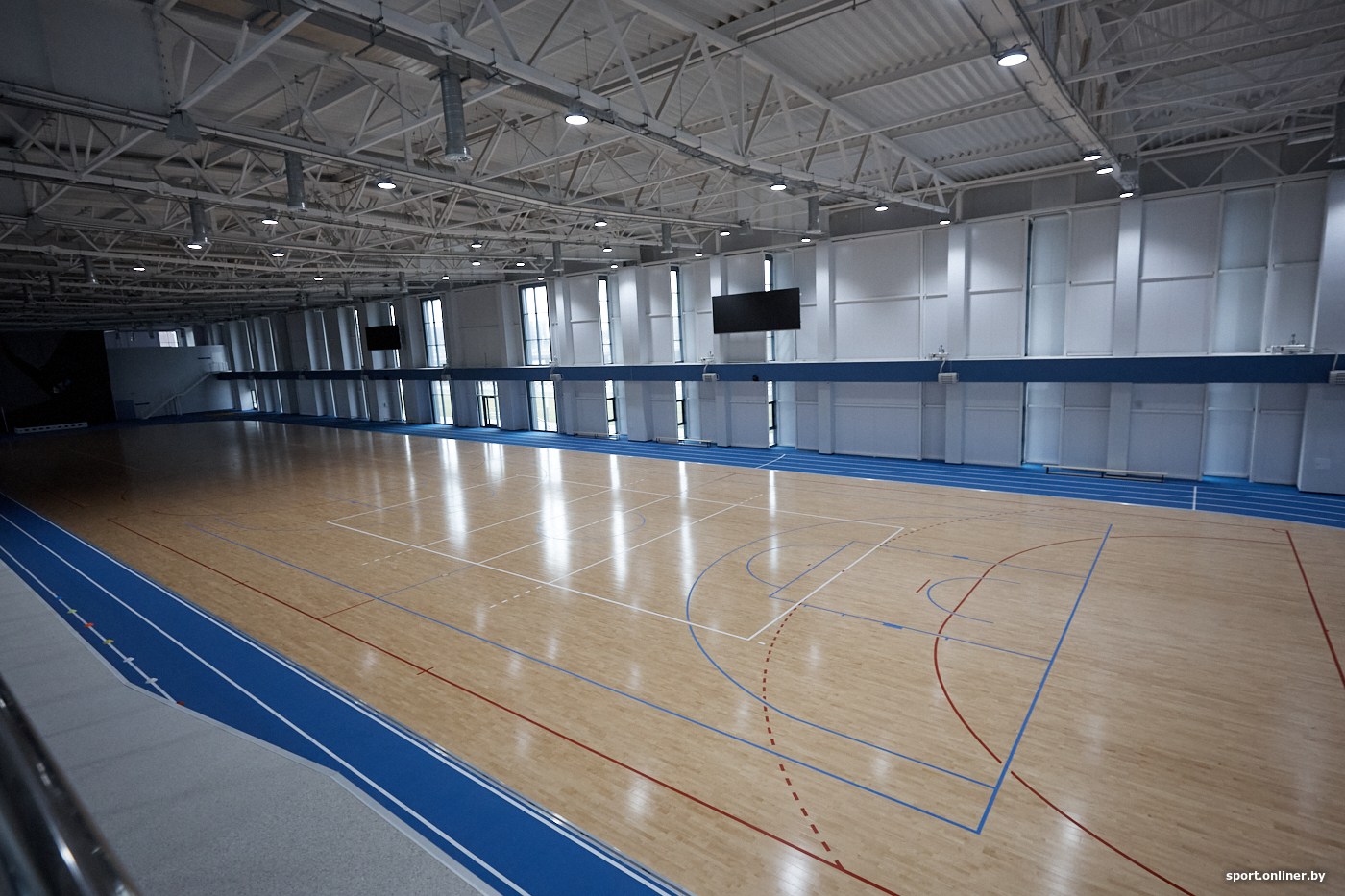 У гэтай універсальнай зале можна гуляць у футбол, гандбол, баскетбол і валейбол.