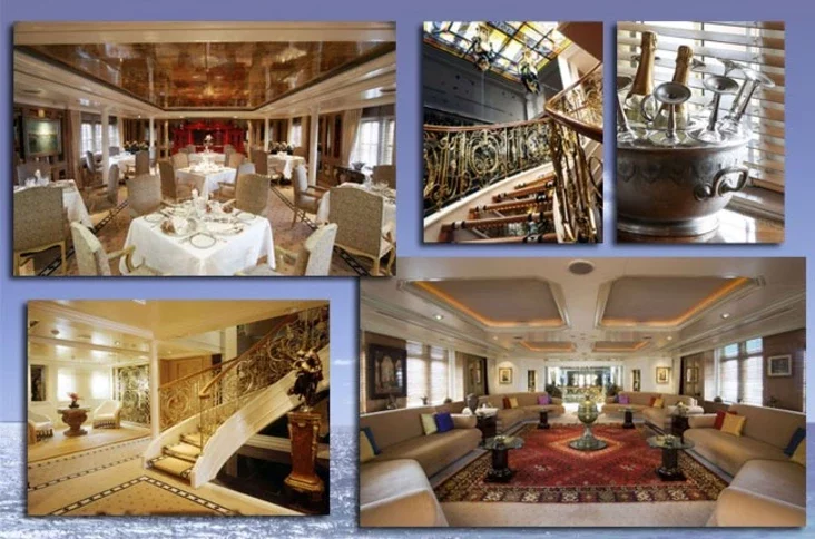 Na Savarona jość basiejn, tureckaja łaźnia chamam (na jaje pajšło 65 ton marmuru), pazałočanaja leśvica, kinateatr i biblijateka.