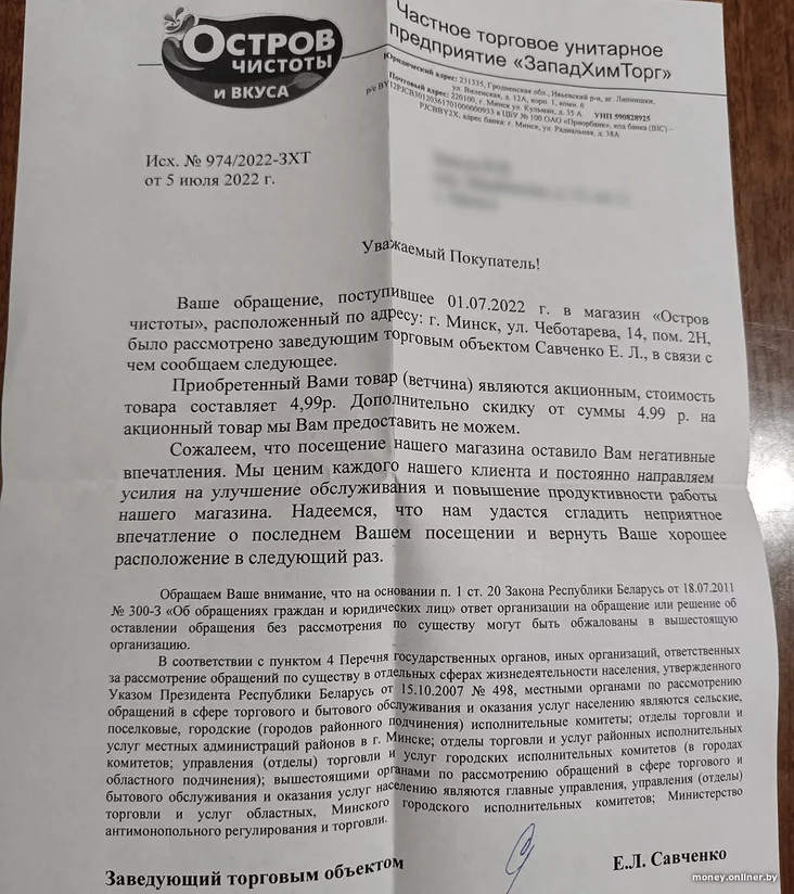 Navošta tady nalepka z abiacańniem pieraličyć canu na kasie? Viktar pakinuŭ u knizie skarhaŭ prośbu viarnuć hrošy. Ale zamiest hrošaj na dniach atrymaŭ adkaz z kramy.