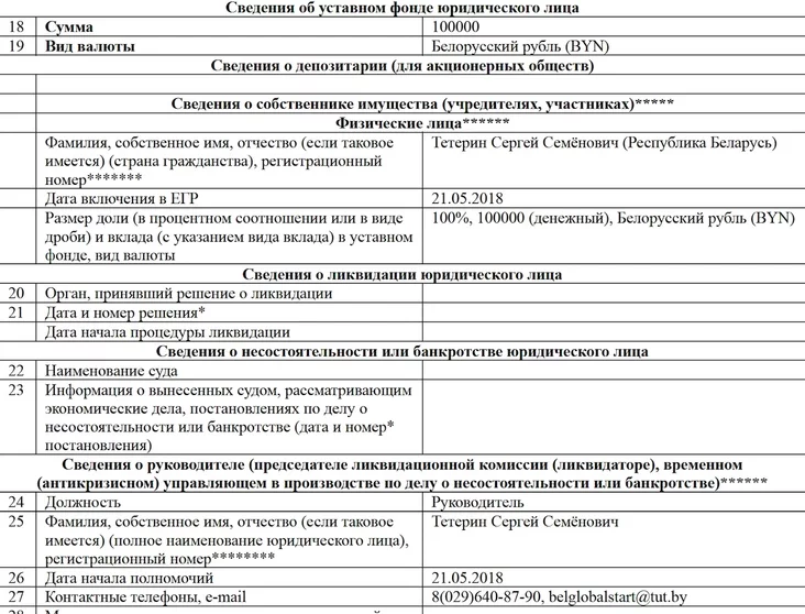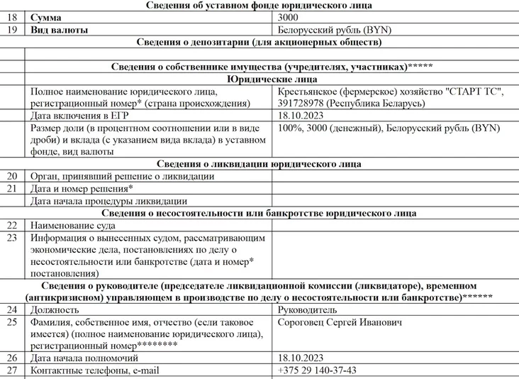 Zhodna z vypiskaj z adzinaha dziaržrehistratara jurydyčnych asob i IP, Ciacierynu naležyć 100% fiermierskaj haspadarki.