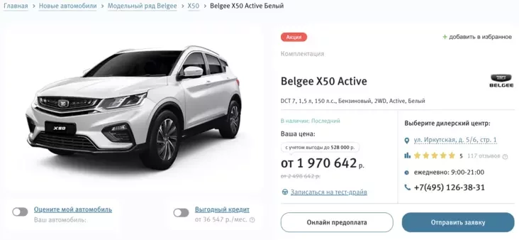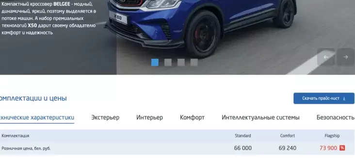 U Biełarusi krasovier Belgee x50 dastupny pa canie ad 66 000 rubloŭ (kala $22 000).
