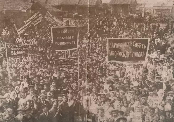 Niecikava, kali pišam pra naša składanaje minułaje ŭ duchu nieasientymientalizmu. Ale nie niecikava, a kiepska, niespraviadliva — ale, zrešty, u naš čas i niecikava taksama, kali my pišam historyju vačyma Edvarda Horvata i jaho pryjacielaŭ. Spraviadliva było b pabačyć tuju historyju vačyma Albierty — voś jana, staić, niaščasnaja, na fota źleva. Vačyma jaje baćkoŭ, vačyma žonki Edvarda. Vačyma tych rabočych, jakija vyjšli ŭ Naroŭli na demanstracyju ŭ 1917 hodzie. Na fota ź jaje źleva bačym transparant «Viečnaja pamiać zahinułym baraćbitam za svabodu» — mianie ŭražvaje i toje, jak biełarusy i jaŭrei vyjšli na tuju płošču razam.