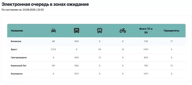 Jašče da źjaŭleńnia naviny pra adnaŭleńnie ruchu ŭ elektronnaj čarzie ŭ punkcie propusku «Brest» było 2300 lehkavikoŭ. Pa stanie na 20:02 čarha pavialičyłasia da 2722 aŭto.