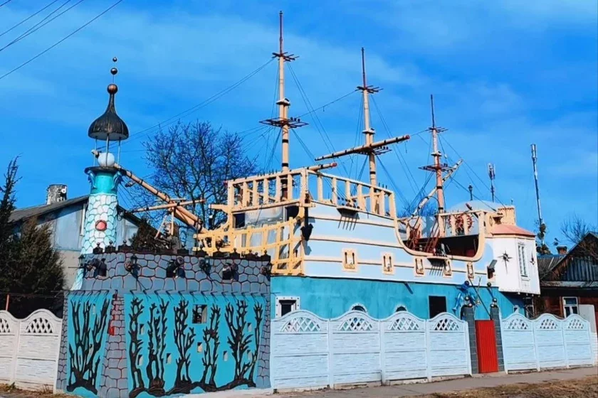 Adnoj sa słavutaściaŭ Pinska staŭ dom-karabiel, jaki na svaim pryvatnym učastku pabudavaŭ zvyčajny piensijanier. Miž inšym, maryŭ jon pra ŭłasny frehat bolš za pałovu stahodździa!