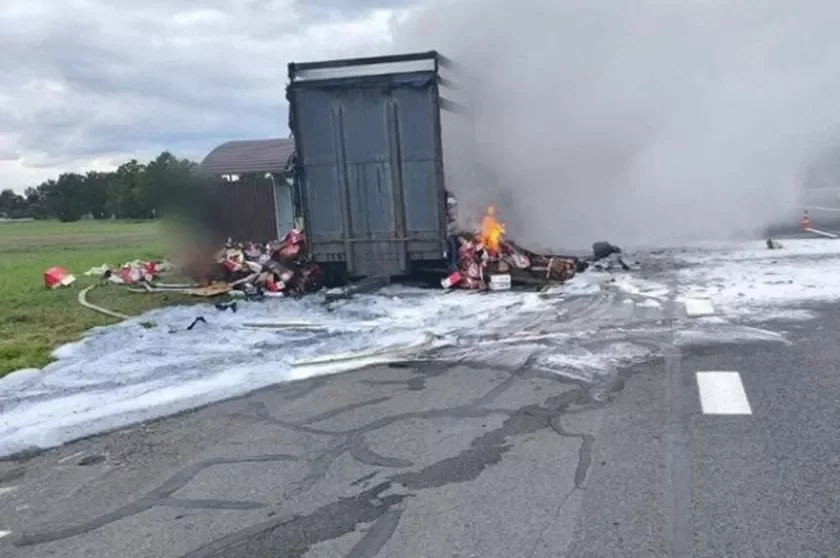 «Za rulom hruzavoha aŭtamabila Volvo z pryčepam znachodziŭsia 39‑hadovy žychar Hrodzienskaj vobłaści, jon jechaŭ z boku Bresta ŭ napramku Minska. Na 61‑m kiłamietry trasy padčas ruchu adbyłosia ŭzharańnie pryčepa», — paviedamili va UUS.