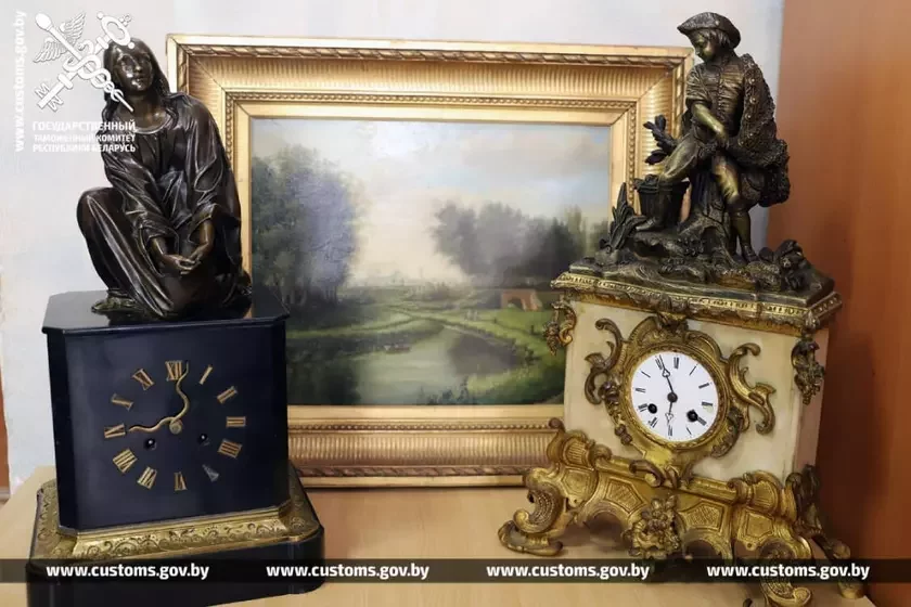 Padčas kantrolu na «zialonym kalidory» pamiežnaha punkta ŭ Breście mytniki znajšli ŭ hramadzianina ŭ asabistych rečach karcinu, napisanuju alejnymi farbami ŭ kancy XX stahodździa, dva kaminnyja hadzińniki ź lićcievaha marmuru i miednaha spłavu, a taksama patefon, paviedamiła pres-słužba Dziaržaŭanha mytnaha kamiteta.