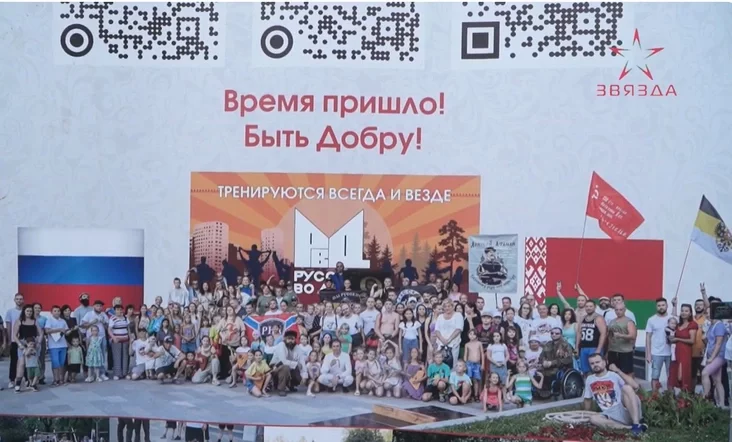 «BiełoRusskich vo dvorie» pijaryli miascovyja rajonki. A ŭ liku partnioraŭ značacca «Biełaja Ruś» i «Naftan». Zaviaršalisia mierapryjemstvy tradycyjnym ahulnym zdymkam. Usio z tymi ž impierskimi i rasijskimi ściahami. I navat biez aficyjnaha čyrvona-zialonaha.
