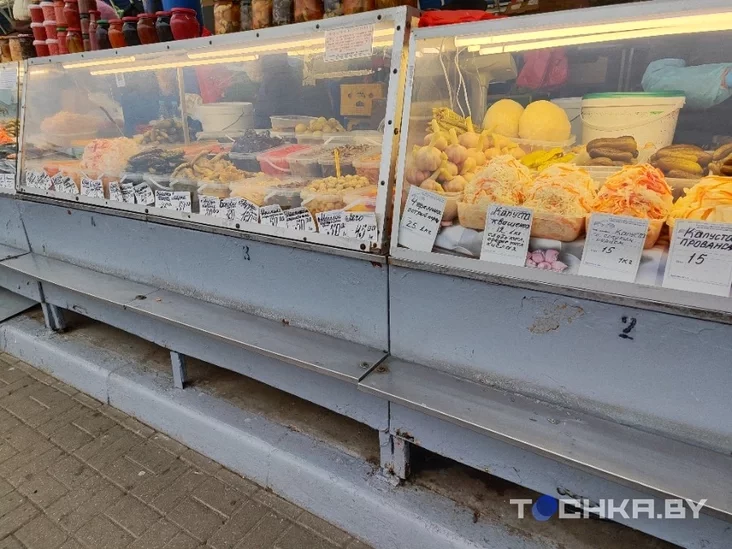 Zvyčajnaja zielanina abydziecca ŭ Br15—25 za kiło. Hryboŭ amal nie zastałosia. Šampińjony pradajucca pa Br8—18. Jašče byli niejkija nieapaznanyja vosieńskija hryby pa Br5 za 1 kh.