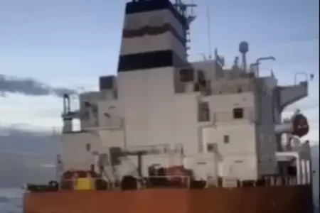 Tankier, jaki pieravoziŭ rasijskuju naftu, tonie la bierahoŭ Sieniehała4