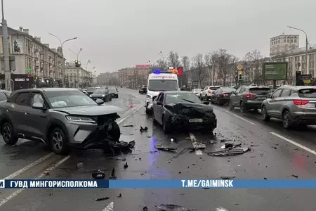 Кіроўца BMW заснуў за рулём — лабавое сутыкненне на праспекце Незалежнасці