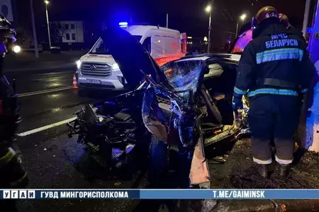 20‑гадовы маладзён на BMW у Мінску не даў рады кіраванню і ўрэзаўся ў слуп і яшчэ ў адзін аўтамабіль3