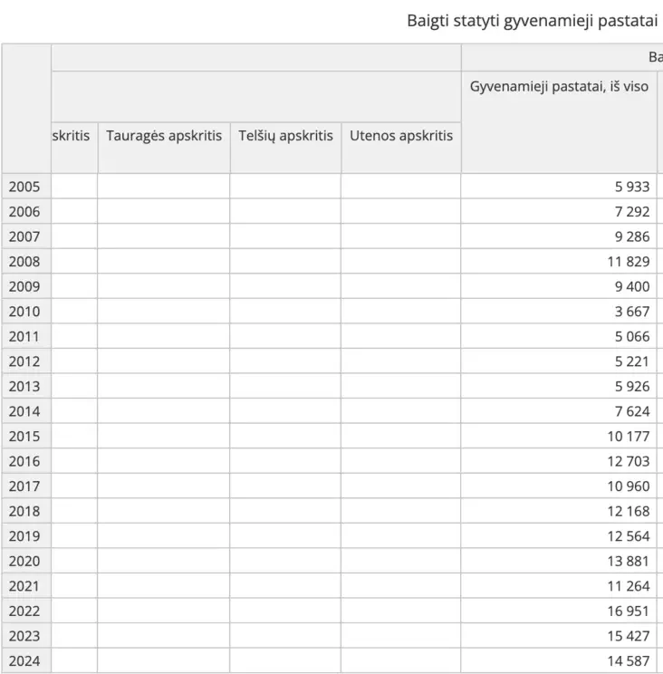 Data on the number of housing units commissioned in Lithuania from 2005 to 2024. Screenshot: stat.gov.lt