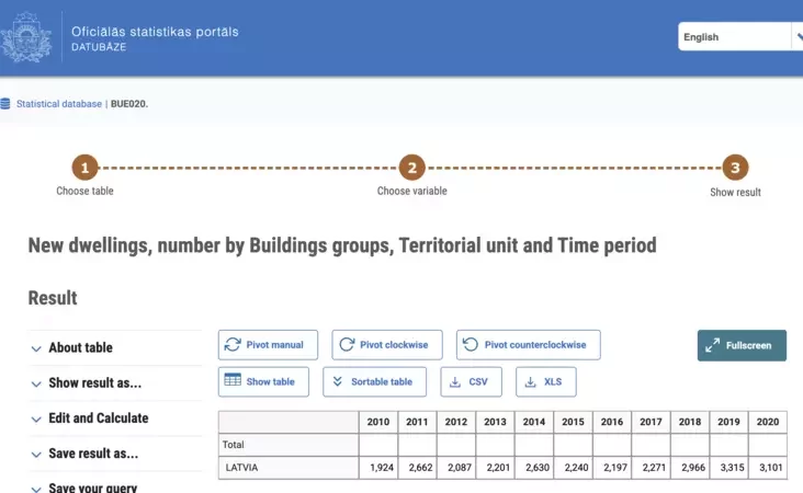 Number of new apartments (residential units) commissioned in Latvia from 2010 to 2020. Screenshot: stat.gov.lv