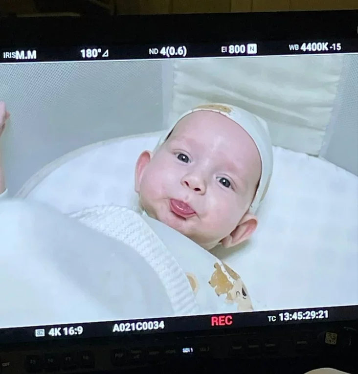 Victoria clarifies: according to the law, a shooting day for a child cannot be longer than four hours. But usually the team tried to do everything much faster. The shooting itself lasted 10-20 minutes, and if they planned to shoot several scenes in one day, the mother and baby were provided with a quiet place. There Victoria could calmly feed her son and play with him.