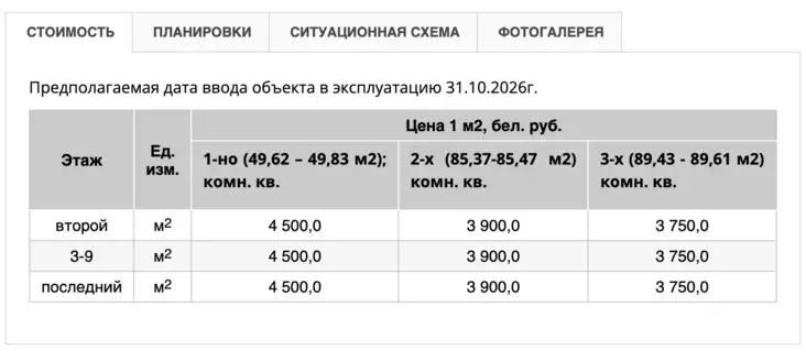 For comparison: in the Grandzichy-4 residential area, distant from the center, «Hrodnazhylbud» sells apartments in panel buildings at prices ranging from 2070 to 2550 rubles (about 700‑865 dollars).