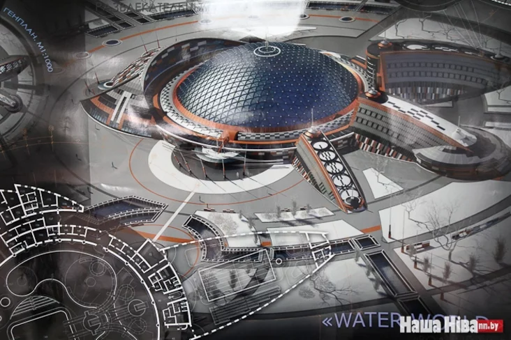 Кроме того, архитектор Виталий Дасько предлагает создать в Новополоцке аквапарк Water World футуристических форм, со стеклянной крышей и необычными пристройками для аттракционов.