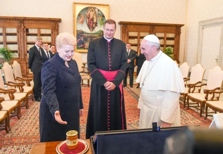Это четвертый визит Д. Грибаускайте в Ватикан. Первым и единственным папой, который посетил Литву, был Иоанн Павел II — он приезжал в Литву в 1993 году.