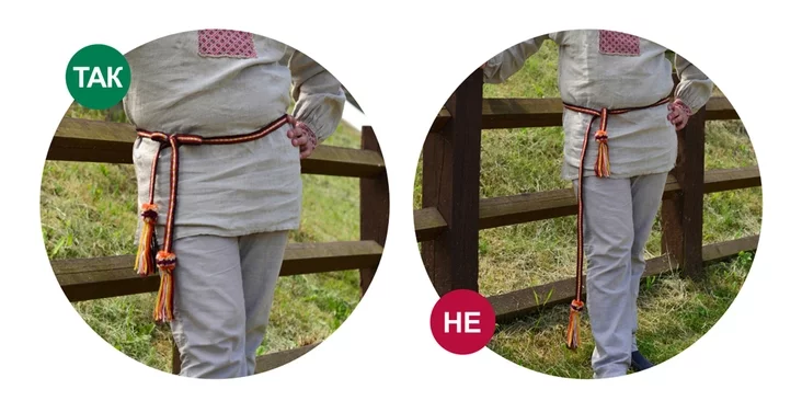 3. Концы пояса должны свисать примерно одинаково по длине и не тянуться по земле.