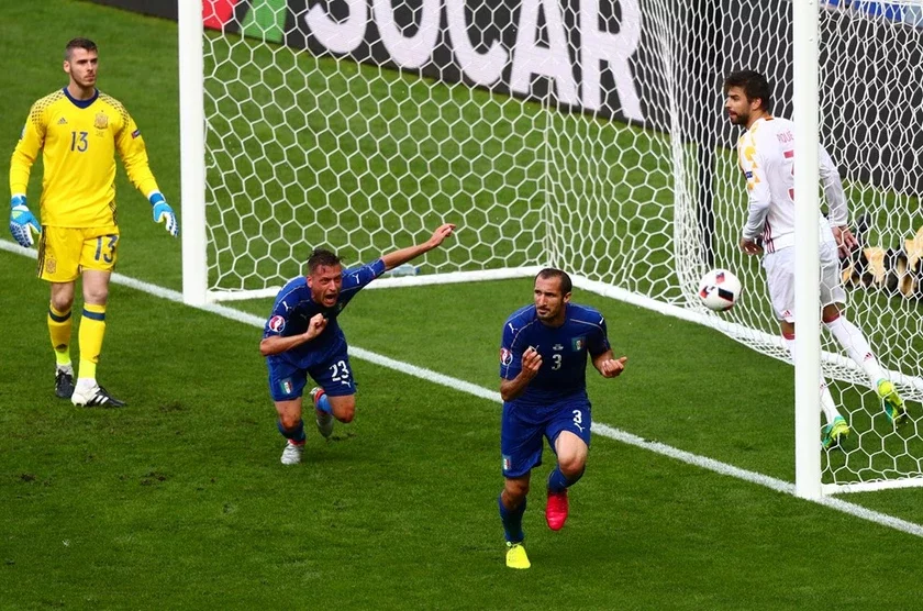 В матче 1/8 финала чемпионата Европы по футболу сборная Италии победила Испанию со счетом 2:0 и вышла в четвертьфинал турнира. На 33-й минуте мяч забил Джорджио Кьеллини, точку поставил на 91-й Грациано Пеле.