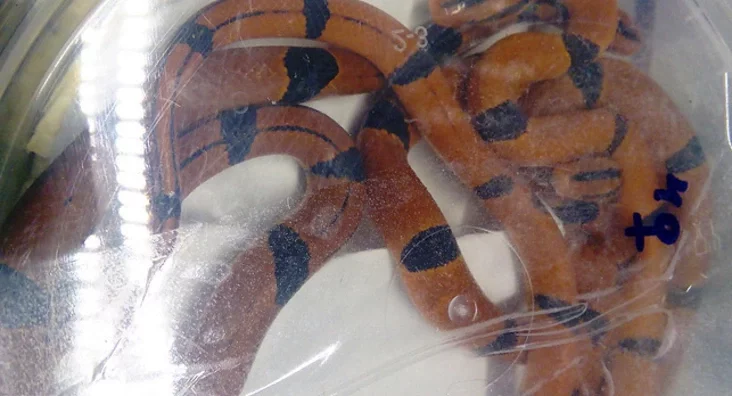 В республиканском пункте таможенного оформления «Брест-Центральный» 3 сентября сотрудники отдела по борьбе с контрабандой Брестской таможни обнаружили партию живых змей, незаконно перемещаемых через белорусско-польскую границу.