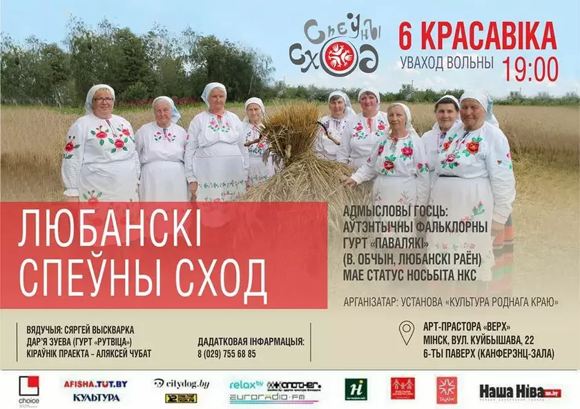 6 красавіка ў Арт-прасторы «Верх» на «Любанскім спеўным сходзе» спяваем разам бяседныя песні. Нашыя госці — аўтэнтычны фальклорны гурт «Павалякі» (в. Обчын, Любанскі раён). Яго творчасць уключаная ў Дзяржаўны спіс гісторыка-культурных каштоўнасцей Беларусі.