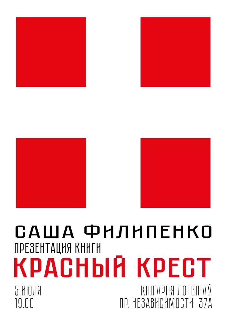 Презентация романа Саши Филипенко «Красный крест» пройдёт 5 июля в 19:00 в Кнігарні Логвінаў.