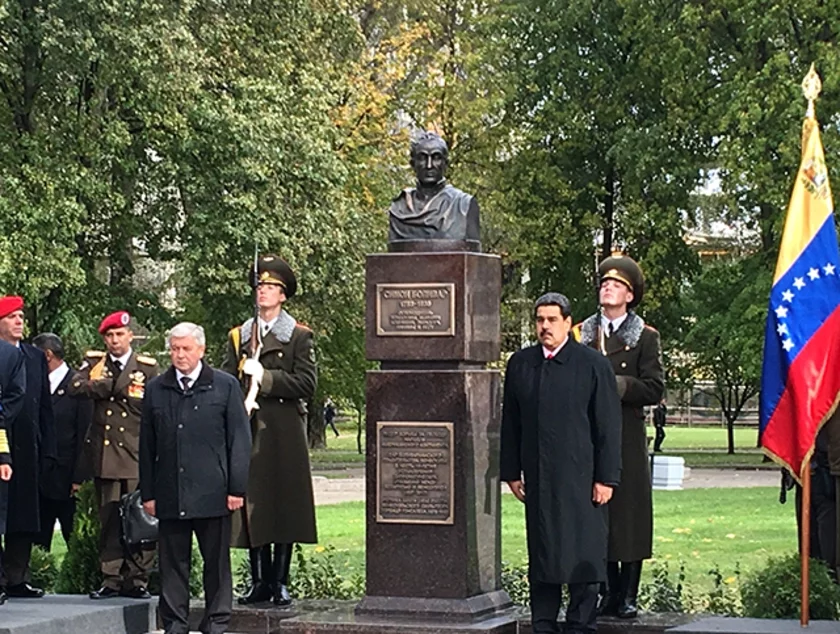 Это дар Минску от боливарианского правительства в честь 20-летия установления дипломатических отношений между Венесуэлой и Беларусью. Об этом свидетельствует мемориальная доска на памятнике.