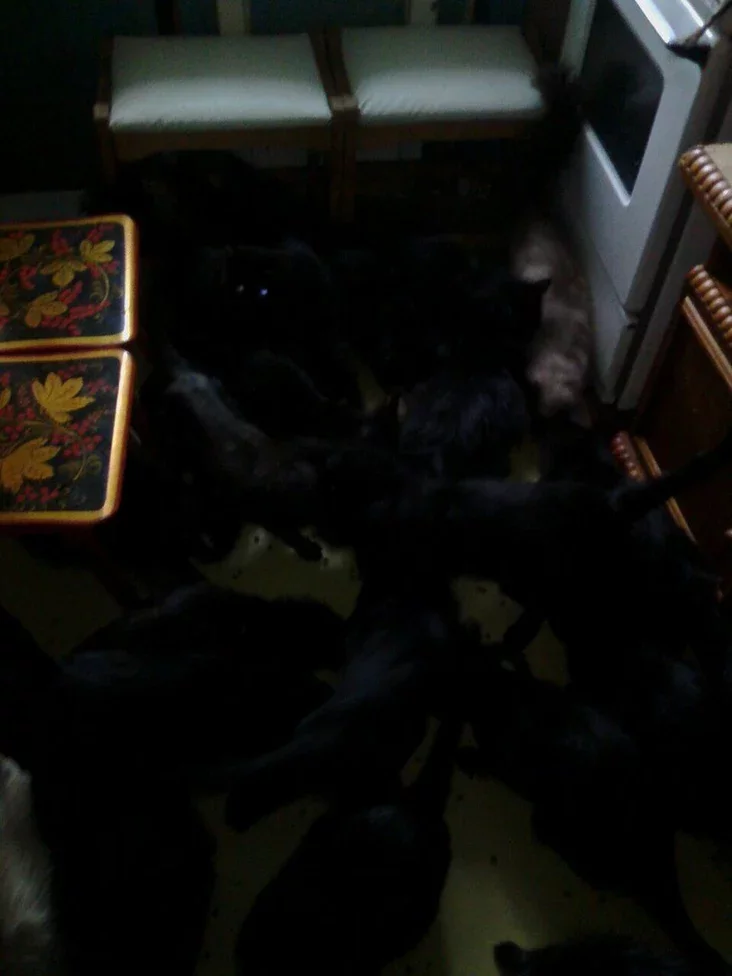 «Это однокомнатная малосемейка. Когда открыли дверь, нас встретили, как туча, одни черные кошкі. Всего насчитали двадцать четыре штуки: две сиамской окраски и 22 черные, отличаются только цветом глаз.
