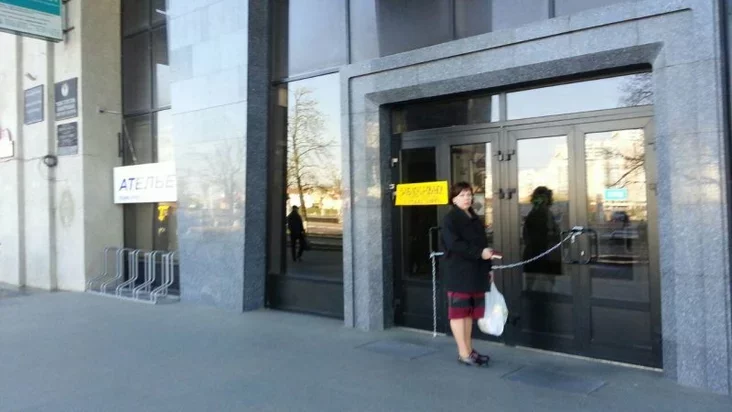 Во время обеденного перерыва чиновников они повесили на двери цепь с замком и плакат «Заблокировано за нарушение Конституции».