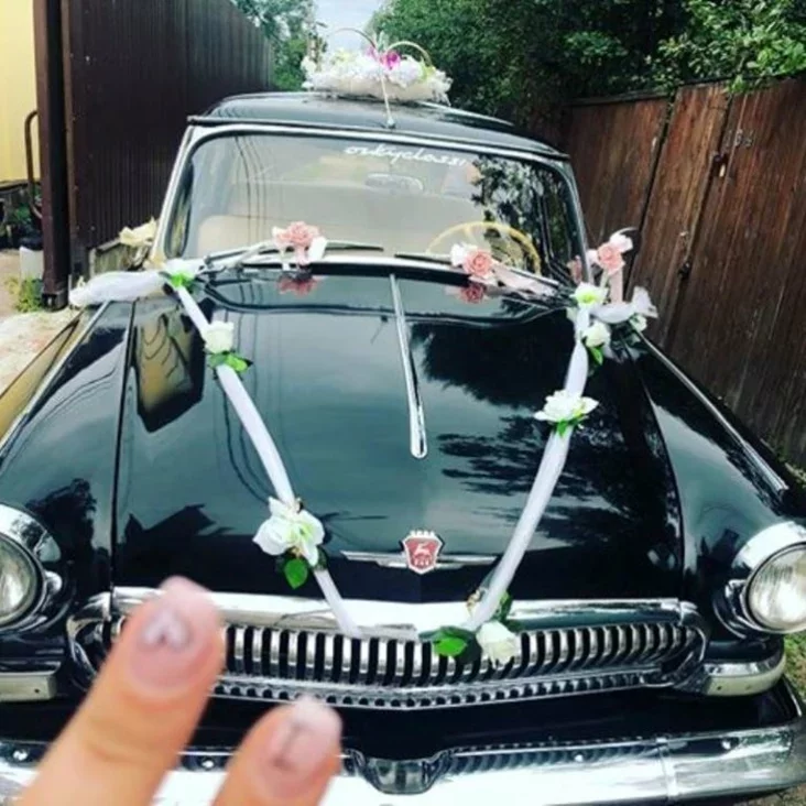 Букет невесты состоял из роз, васильков и георгин. В ЗАГС Бьянка отправилась на ретро-автомобиле, украшенном лентами и цветами.