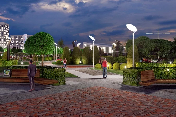 Вся эта территория наполняется малыми архитектурными формами, созданными в том числе и бизнесом как дополнительная площадь для рекламы. Сама же реклама на этой площади должна быть на жидкокристаллических носителях и взаимодействовать со зрителем.