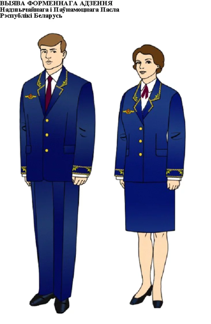 Спецформа послов Беларуси, а также посланников нашей страны I и II классов будет выполнена в строгих синих цветах.