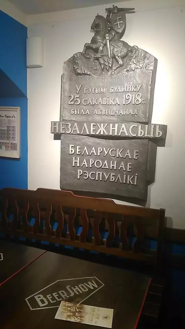 В баре установили изготовленную ещё в 1993 году мемориальную доску с текстом на тарашкевице. Ну а новая доска, отлитая на народные деньги из дорогого материала, ещё ожидает своей установки.