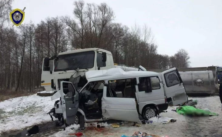 Напомним, авария произошла 14 ноября около 10.55 на 176-м км трассы М10 Граница РФ — Гомель — Кобрин. Микроавтобус VW Transporter под управлением 30-летнего водителя выехал на полосу встречного движения, где столкнулся с молоковозом, за рулем которого был 29-летний житель Калинковичей.