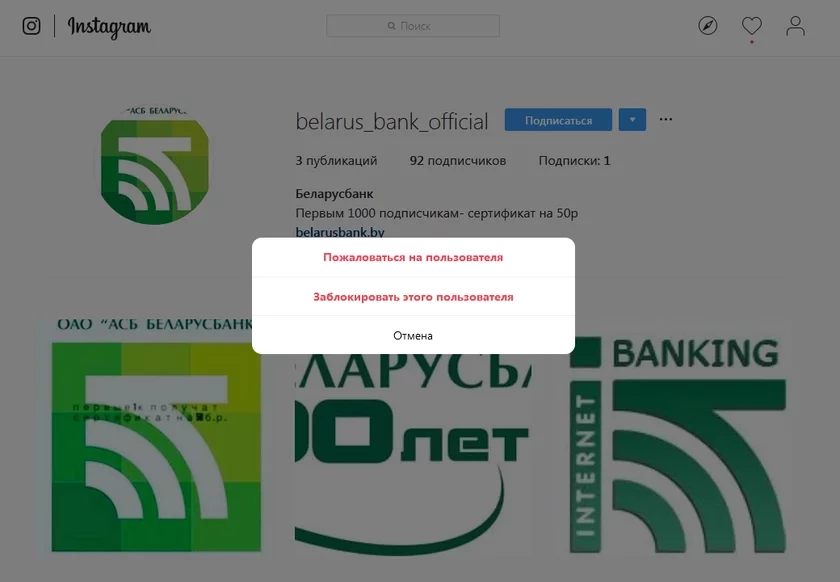 Кроме того, в сети появился и поддельный аккаунт belarus_bank_official, где размещено объявление: «Первым 1000 подписчикам — сертификат на 50р».