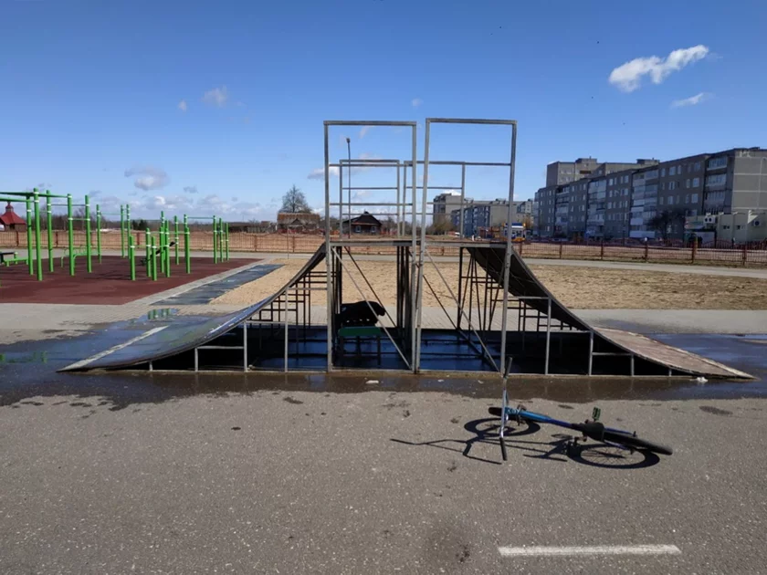 Залез на трамплин для прыжков с велосипедом, не удержал равновесие и упал, ударившись головой о деревянное покрытие.