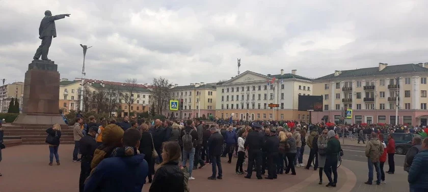 В полдень 21 апреля на площади Ленина вновь начали собираться люди, выступающие против аккумуляторного завода под Брестом.