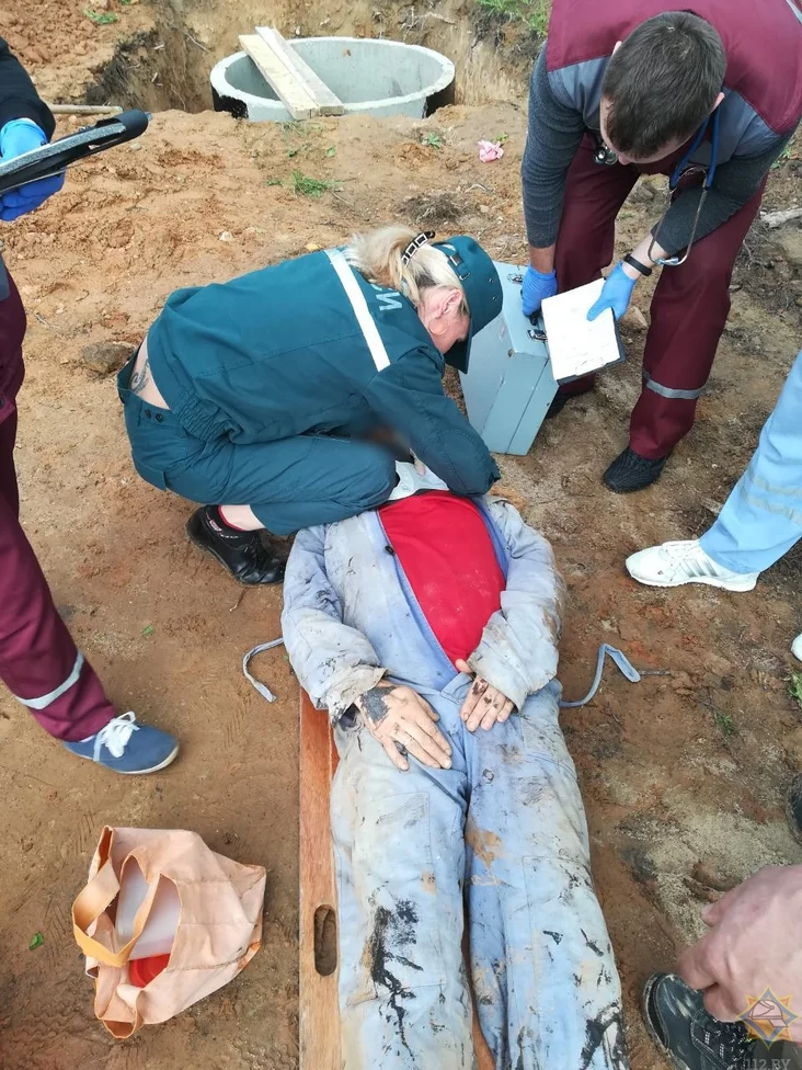 К месту происшествия прибыли подразделения МЧС. Спасатели увидели пострадавшего, который лежал в котловане с колодцем из железобетонных колец на глубине четырех метров.