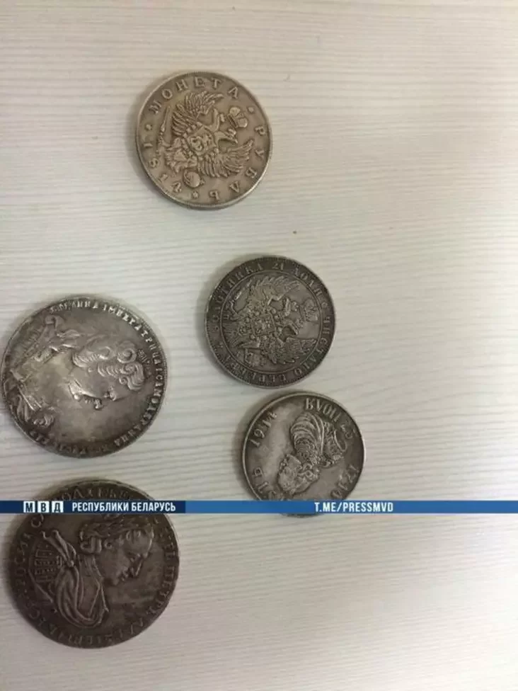 Уже установлено, что задержанные причастны к аналогичной сделке месячной давности в Молодечно: там местному жителю были проданы три поддельные монеты и медаль.