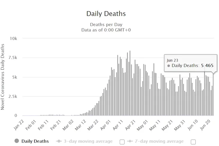 За 22 июня от коронавируса в мире умерло 5 465 человек.