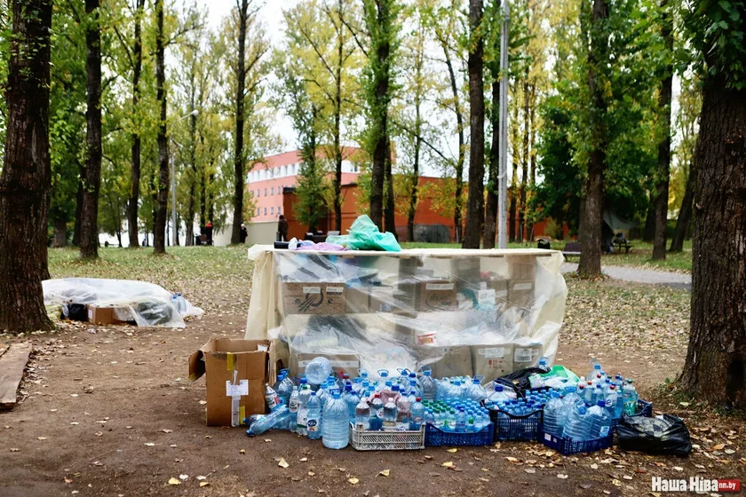 Лагерь волонтеров возле Центра изоляции правонарушителей на Окрестина в Минске прекратил работу. Шатра и палаток в парке больше нет.