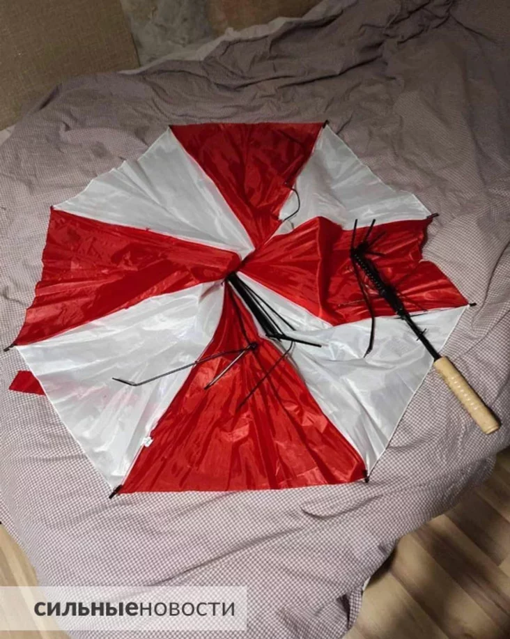 Сломанный зонт Анастасии лежит дома, девушка купила себе такой же новый и продолжает с ним ходить.