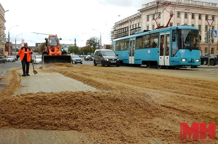 На пересечении проспекта и улицы Козлова в Минске рассыпали какую-то смесь ФОТО