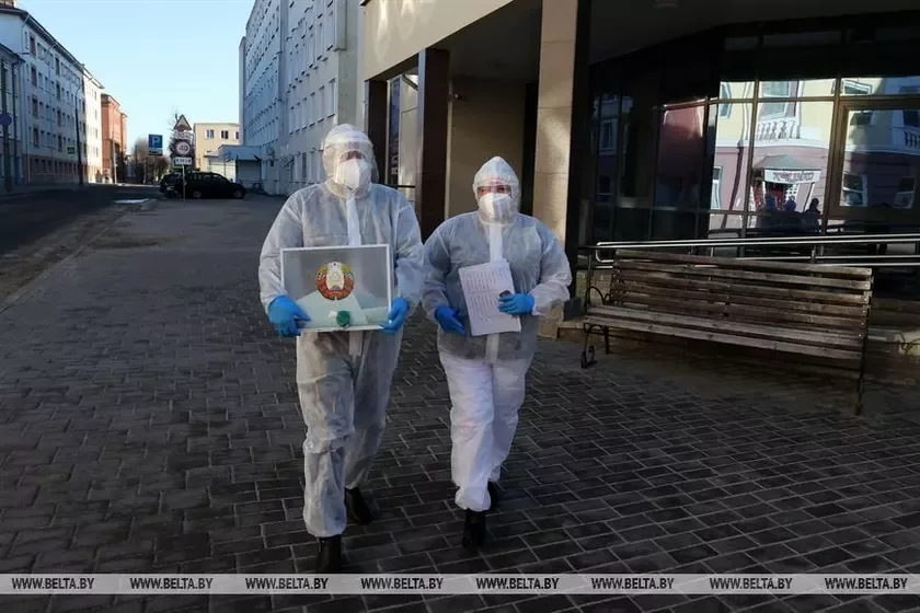 Это не постапокалипсис, так в Могилеве ходят с урной для голосования по больнице скорой помощи.