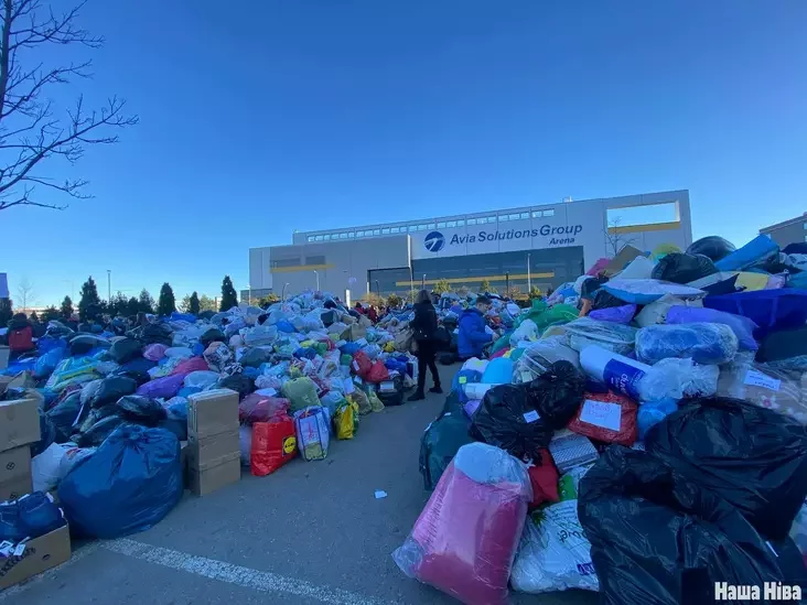 В Вильнюсе неравнодушные люди собрали горы вещей для украинцев. Сбор вещей будет сегодня продолжаться около «Озаса» до 20:00.