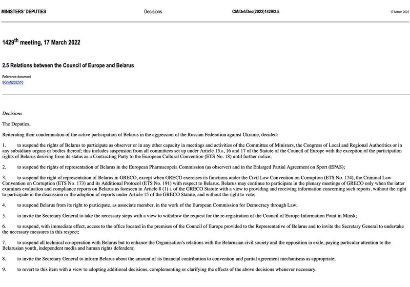 Вместе с тем Комитет Совета Европы намерен сохранять и укреплять отношения с белорусским гражданским обществом и оппозицией в изгнании, «уделяя особое внимание белорусской молодежи, независимым СМИ и правозащитникам».