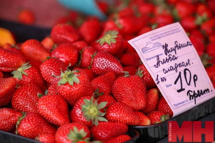 С порога посетителей рынка встречают сладкие ягодные ароматы, а рядом с прилавками, где продают клубнику и малину с черешней, летом традиционно самые длинные очереди. Белорусской клубники на рынке становится меньше, и цены на нее не меняются. Кило мелких ягод реально купить за 6 рублей. Но все же чаще можно встретить ценники в 7—10 рублей за 1 кг.