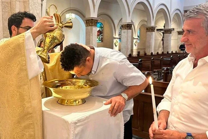 Бразилец опубликовал в социальных сетях снимки со своего крещения.