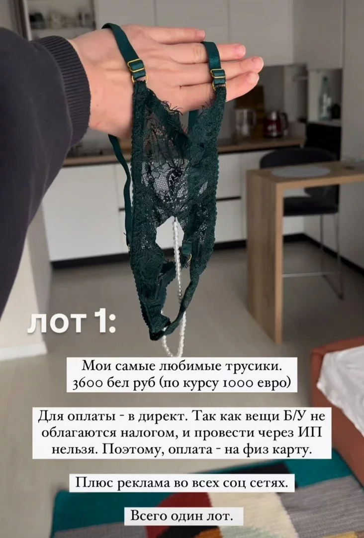 Первым предложением стали самые любимые стринги Кристины — с жемчужинами. За них блогер хочет получить тысячу евро, или примерно 3600 белорусских рублей.