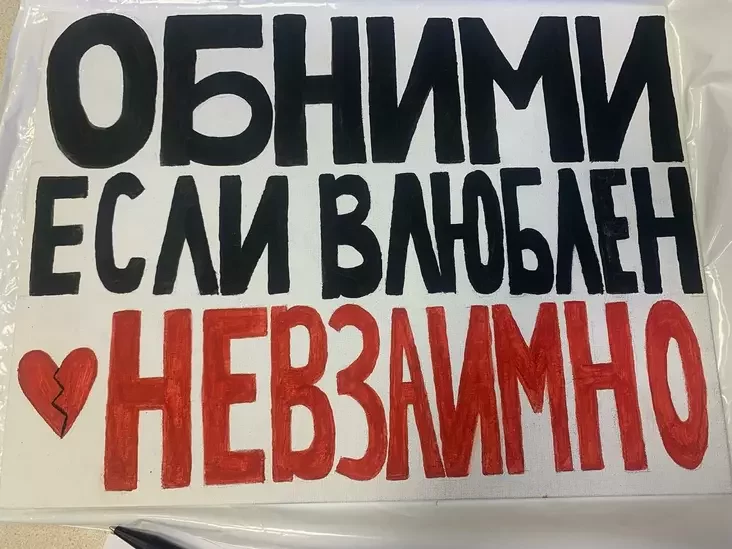 12 марта 2025 года в фейсбуке Шибковской появилось фото плаката «Обними, если влюблен невзаимно» — и разбитое сердце. Она сама сделала его на работе.